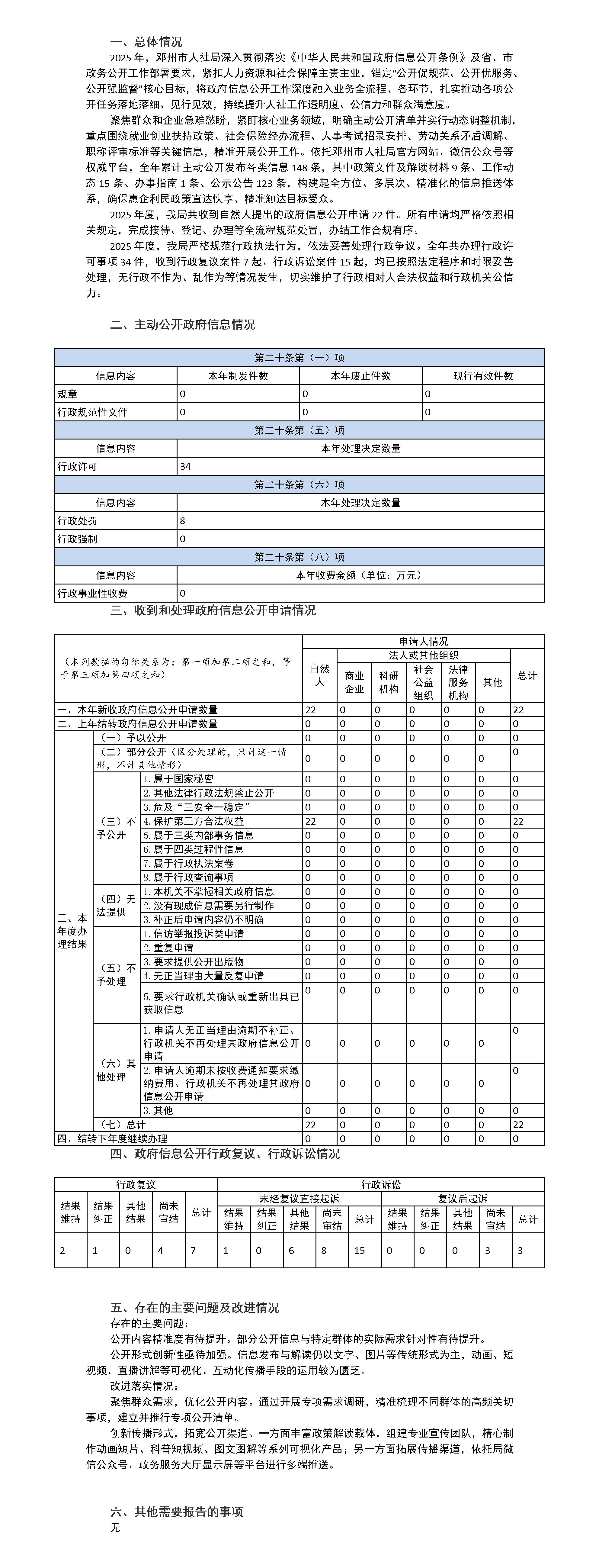 邓州市人社局2025年政府信息公开工作年度报告